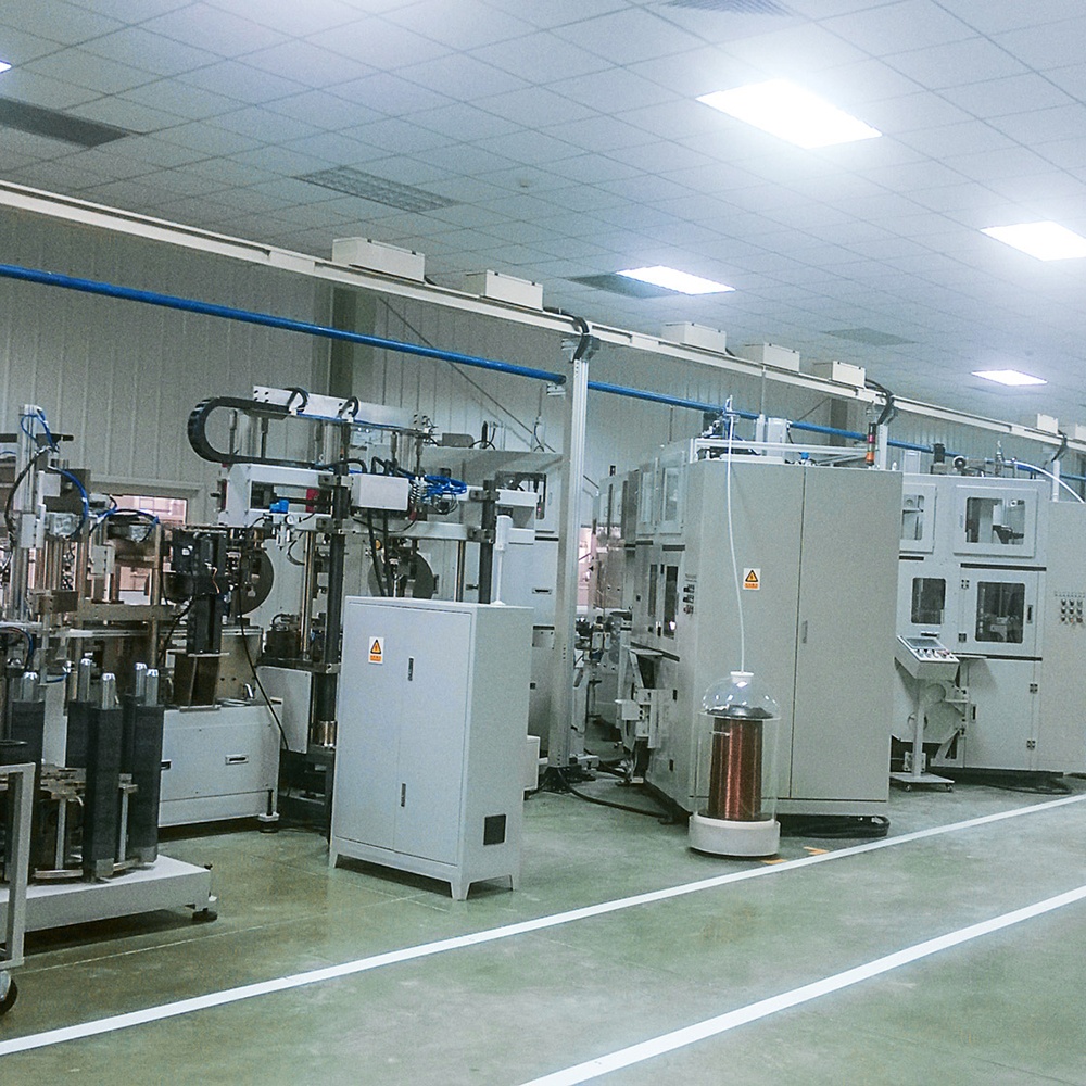 適合空調(diào)、冰箱壓縮機、風(fēng)扇及水泵、洗衣機等感應(yīng)電機定子的全自動無人化生產(chǎn)線。該線集世界先進的電機定子生產(chǎn)技術(shù)于一身,所有元器件采用世界品牌,繞線、下線采用多臺繞下線一體機組成、機器人上下料、整形機采用全伺服驅(qū)動、回轉(zhuǎn)工作臺方式、綁扎機采用四工位布置、帶自動打結(jié)功能、整線設(shè)備實現(xiàn)無人操作,可以真正做到不停機生產(chǎn)的全自動線,該線可以加工小槽口高槽滿率散片電機定子,13秒的生產(chǎn)節(jié)拍,先進的配置是世界性價。
